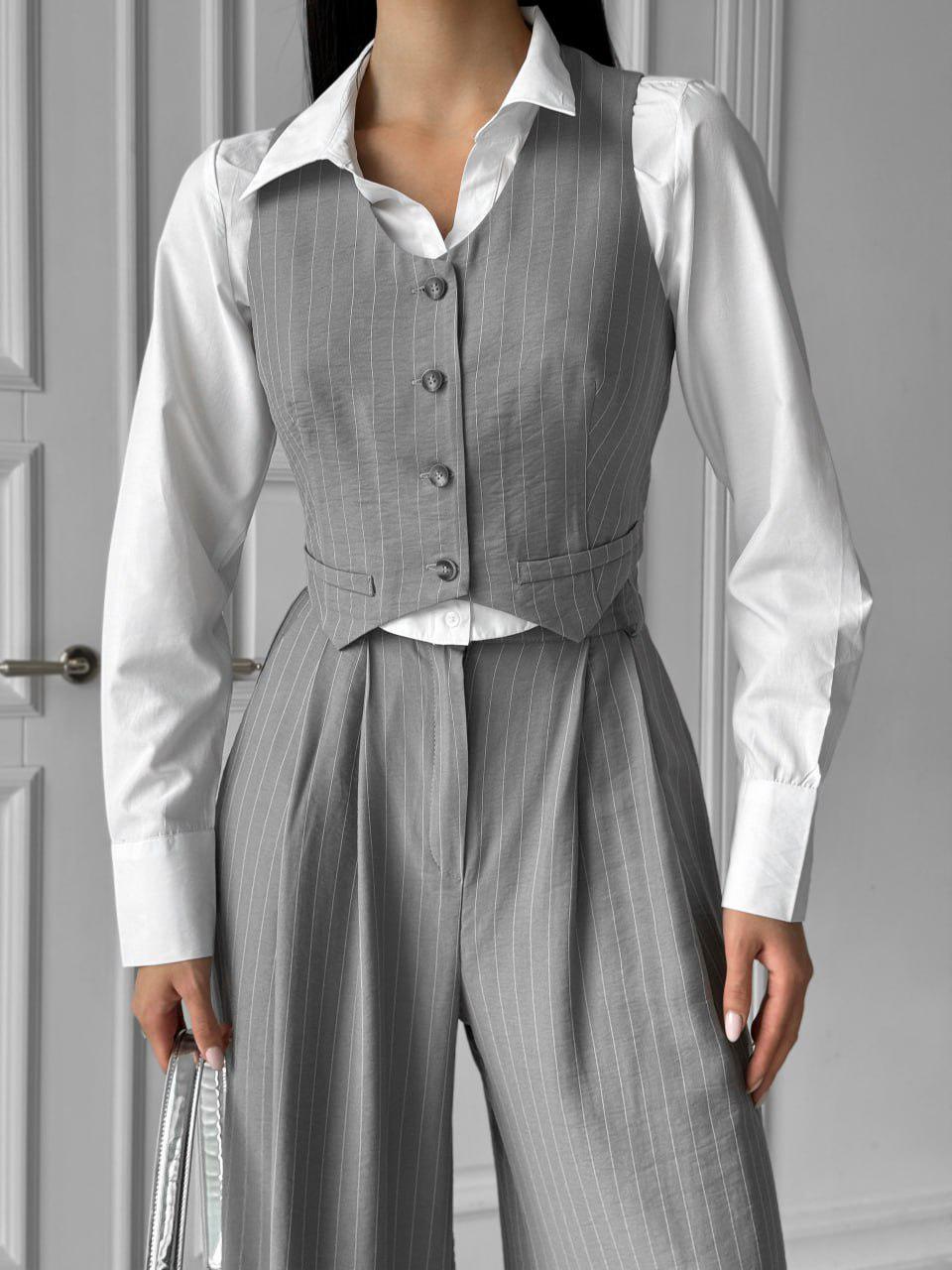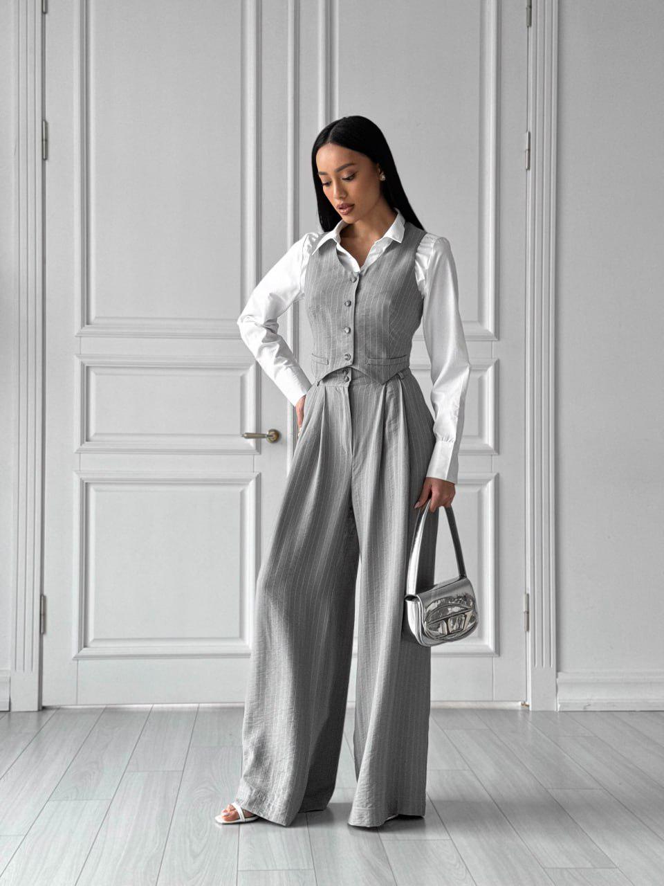 Formal Event Suit for Women, Striped Pants Set, Sleeveless Classic Vest, Palazzo Pants, Business Suit, Casual Suit