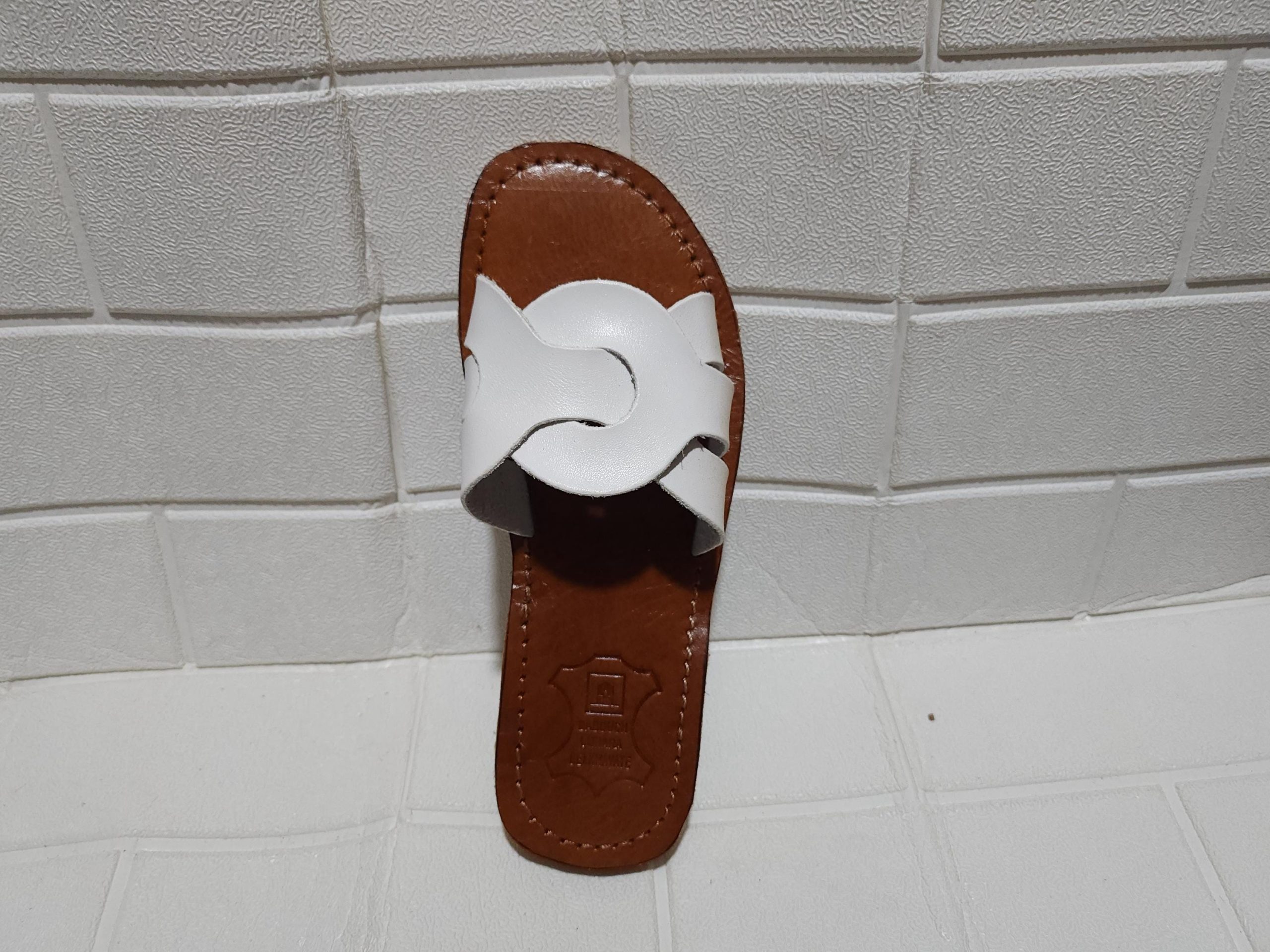 ✔ Color: White strap with a brown sole