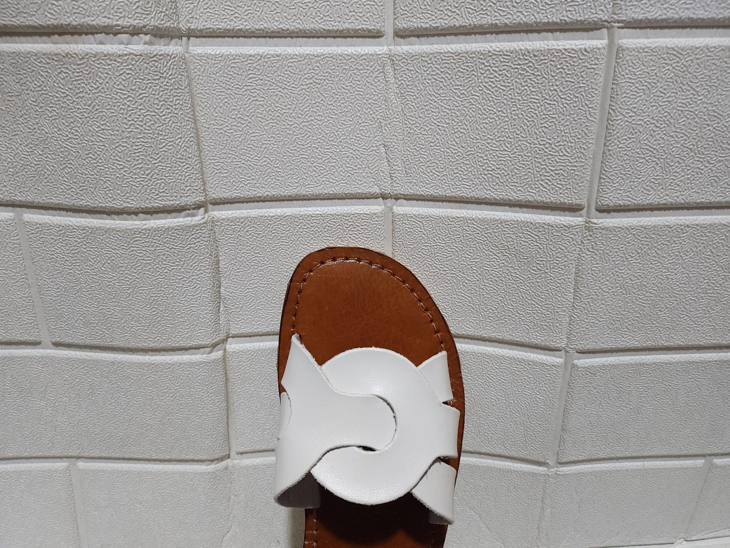 Step into timeless elegance with our handmade Moroccan white leather sandals for women. Featuring a minimalist silhouette with an eye-catching interlocking strap design, these artisan sandals combine traditional craftsmanship with modern chic. The soft white leather contrasts beautifully with the natural brown leather sole, making them perfect for both casual wear and summer outings.
