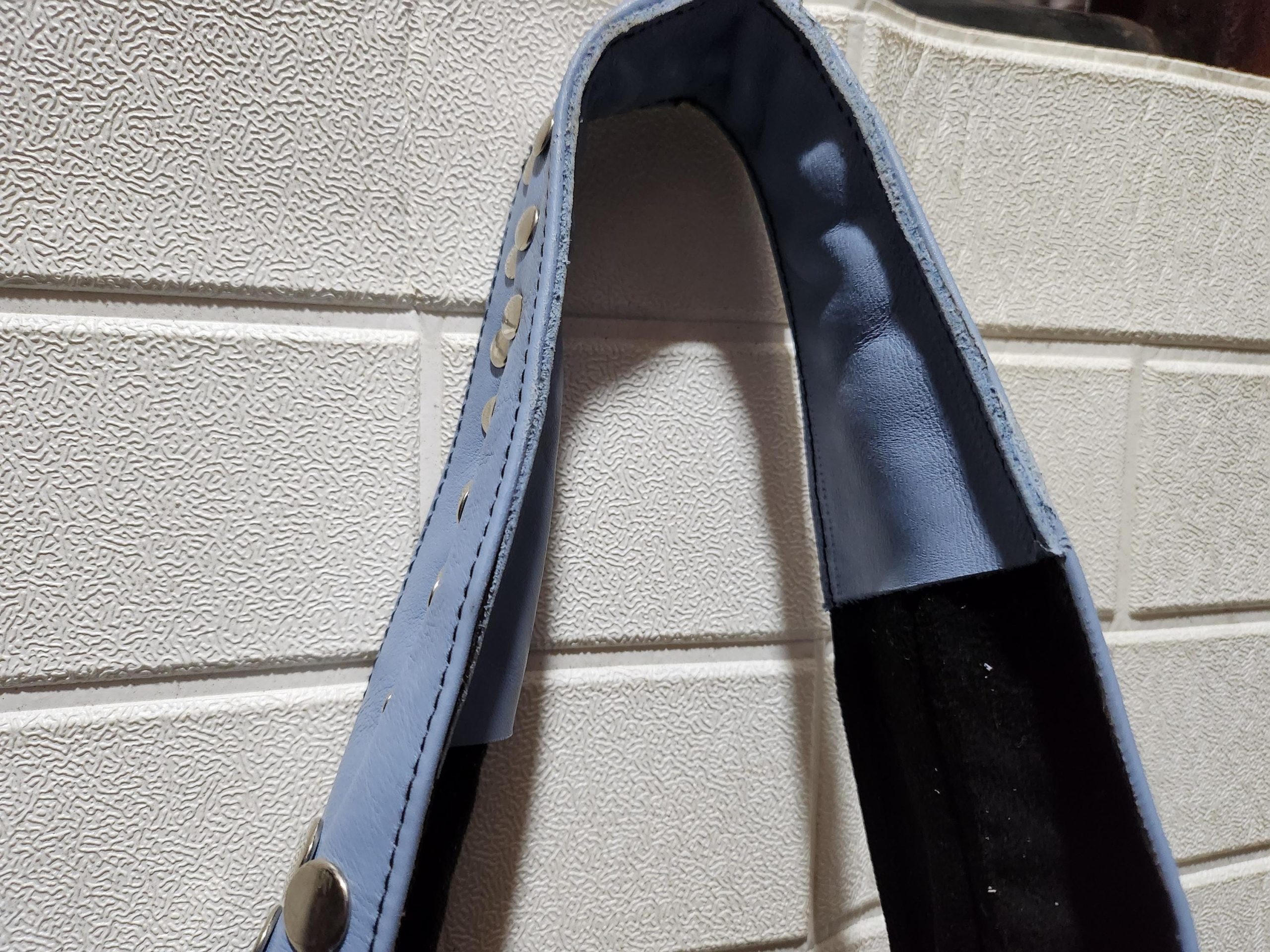 Add a calm and elegant touch to your outfit with this handmade Moroccan purse, made from soft light blue leather and decorated with shiny metallic silver studs. This studded shoulder bag blends Moroccan tradition with modern boho-chic style.